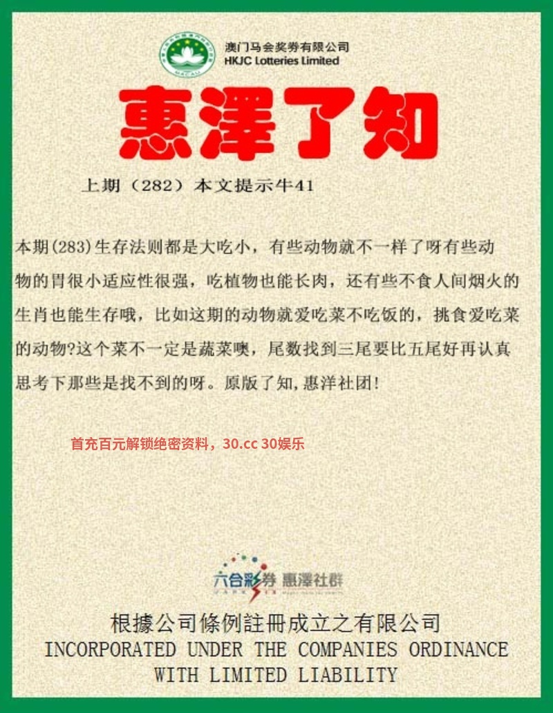 283期:生存法则都是大吃小,有些动物就不一样了呀有些动物的胃很小适应性很强,吃植物也能长肉,还有些不食人间烟火的生肖也能生存哦,比如这期的动物就爱吃菜不吃饭的,挑食爱吃菜的动物?解吃菜肖猪鼠鸡猴和吃肉肖虎蛇龙狗。这个菜不一定是蔬菜噢,尾数找到三尾要比五尾好再认真思考下那些是找不到的呀。